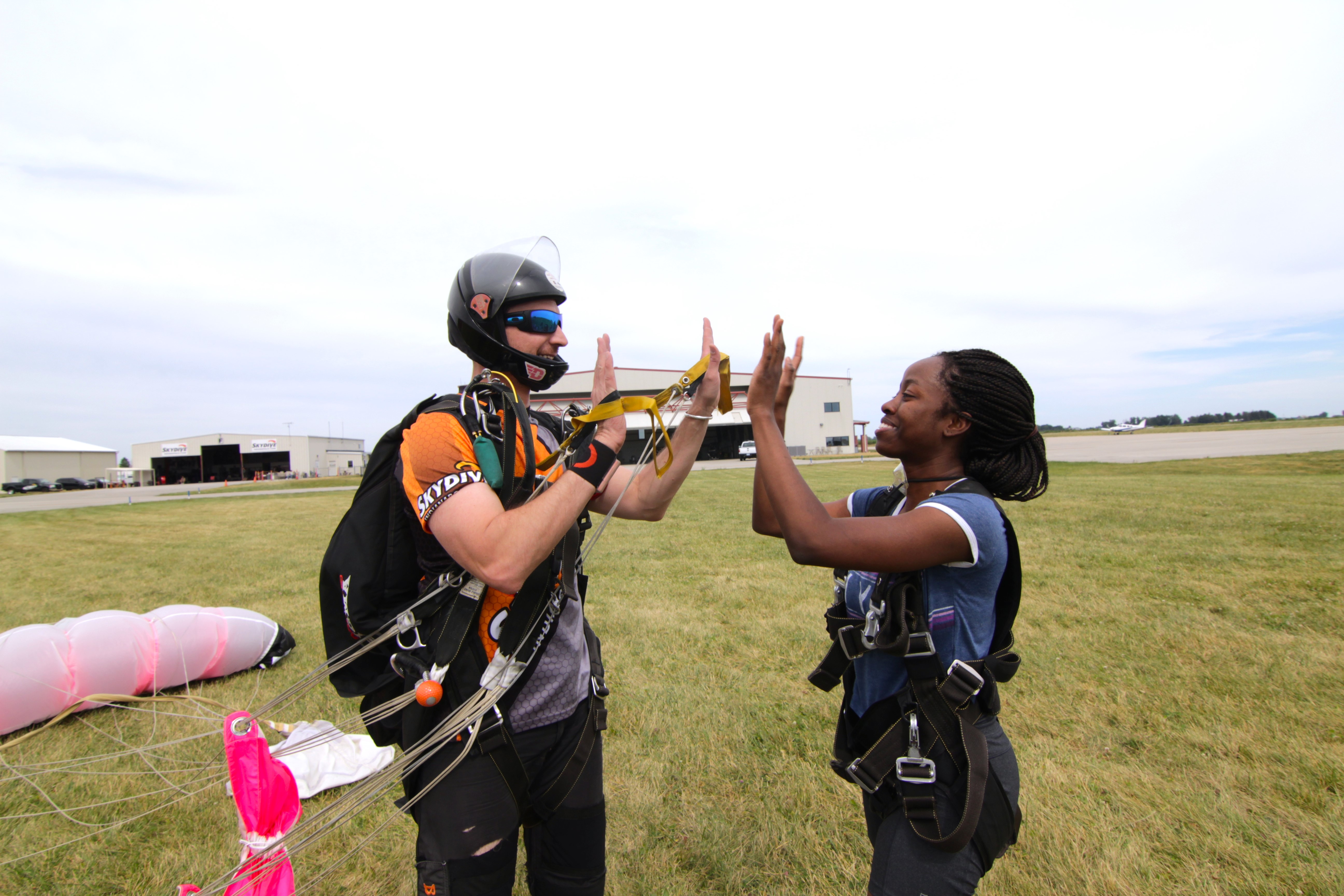 Having a tandem dive meant that I only had one responsibility while landing. As Andre steered the parachute towards the drop zone, my job was to keep my knees lifted to my chest right before Andre’s feet touched the ground. Upon landing, Andre unfastened my harness from his, as I gushed in disbelief about the incredible experience of freefalling from the sky.